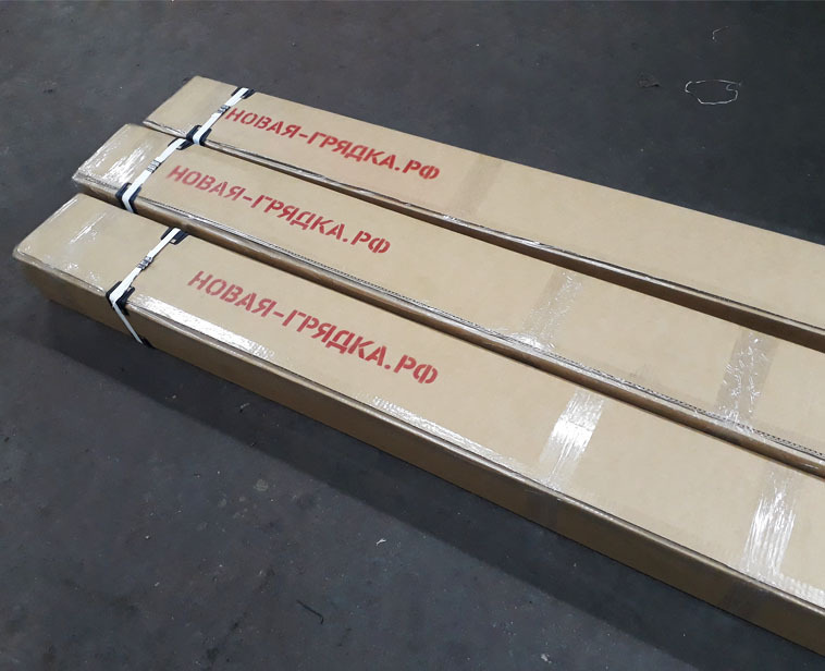 Грядки упакованы в плотную картонную упаковку, дополнительно обернуты стрейч-пленкой и скреплены друг с другом. Вы легко перевезете грядку в обычном легковом автомобиле. Длина в упакованном виде до 2м.